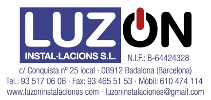 Email: luzoninstalaciones@gmail.com Teléfono: 34 93 517 06 06 Dirección: C/ Conquista nº 25 local 08912 Badalona Barcelona